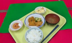 今月のイベント食はクリスマス献立です。フライド…